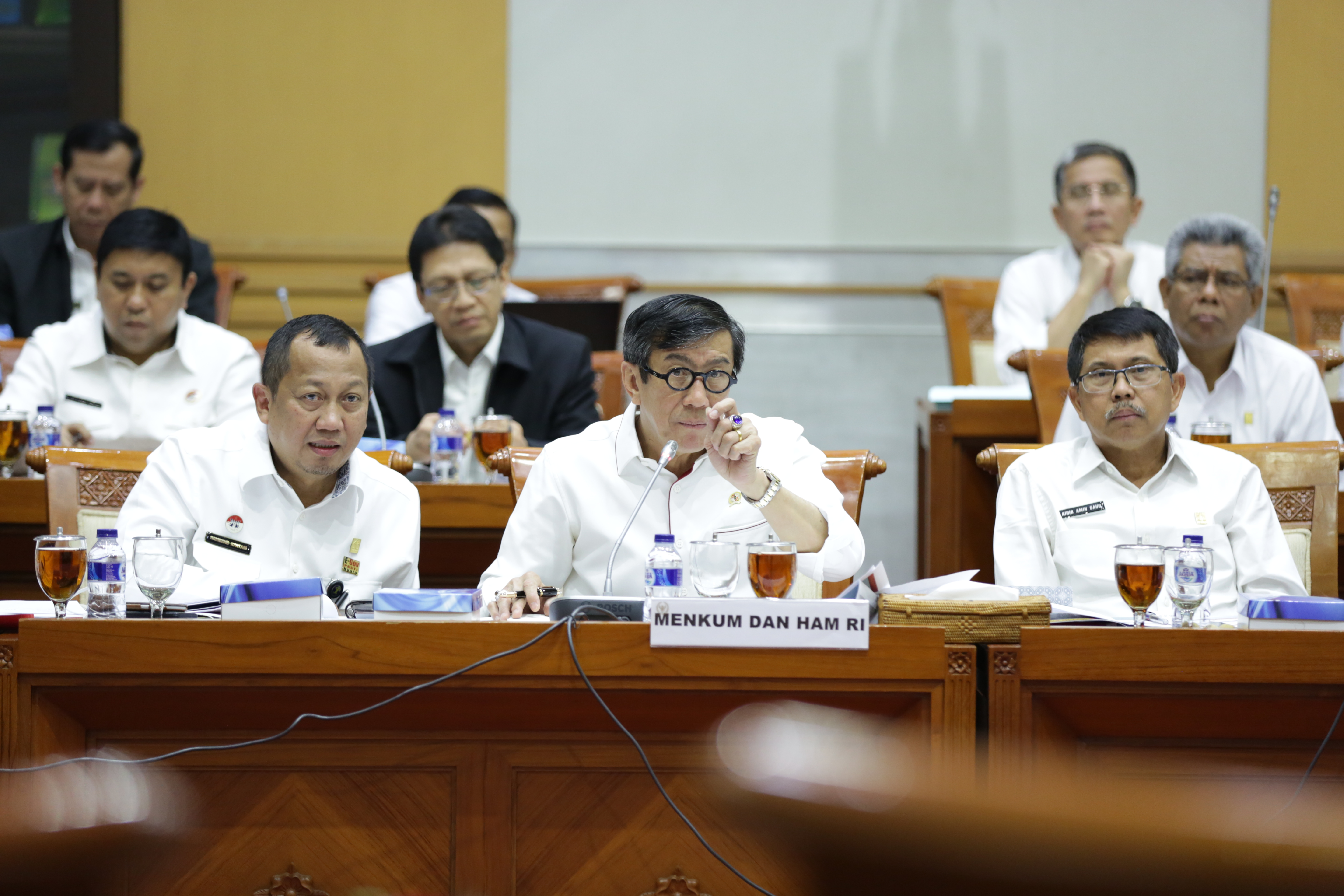London & Jersey - Menteri Hukum dan HAM RI, Yasonna H. Laoly, didampingi oleh Duta Besar RI untuk Kerajaan Inggris, Rizal Sukma, memimpin Delegasi RI (pejabat senior Kementerian Hukum dan HAM, perwak...